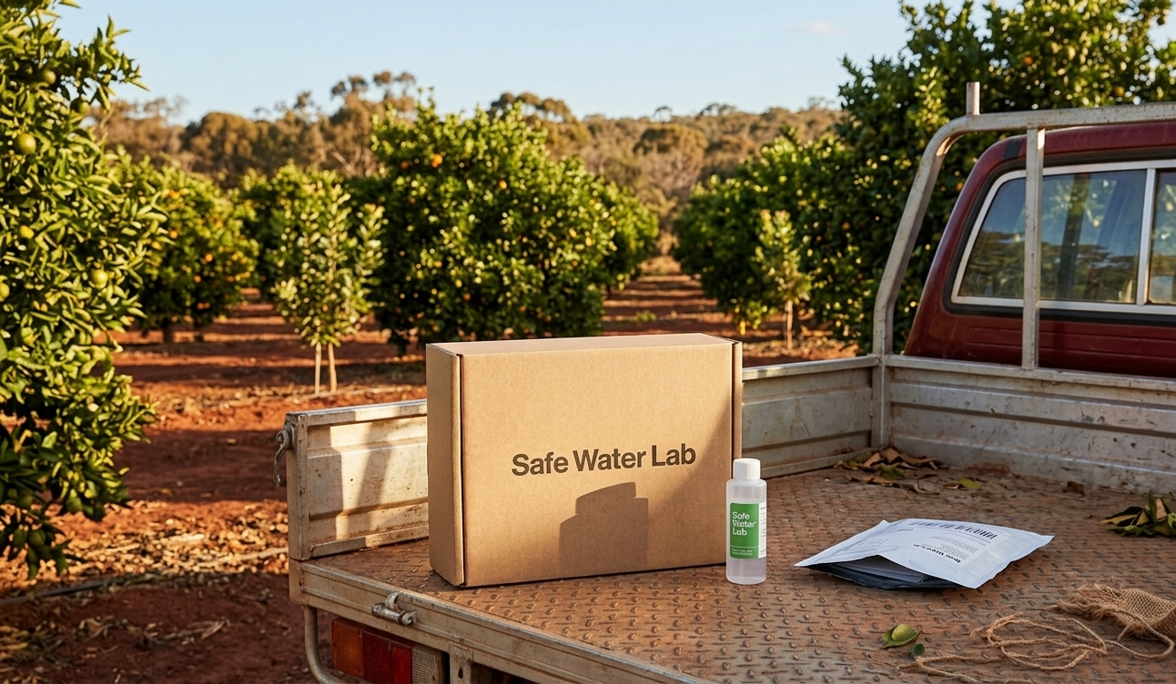 Mail-order bore water testing for residential garden bores and rural irrigation. NATA-accredited laboratory analysis delivered to your door — no site visit, no consultant required.